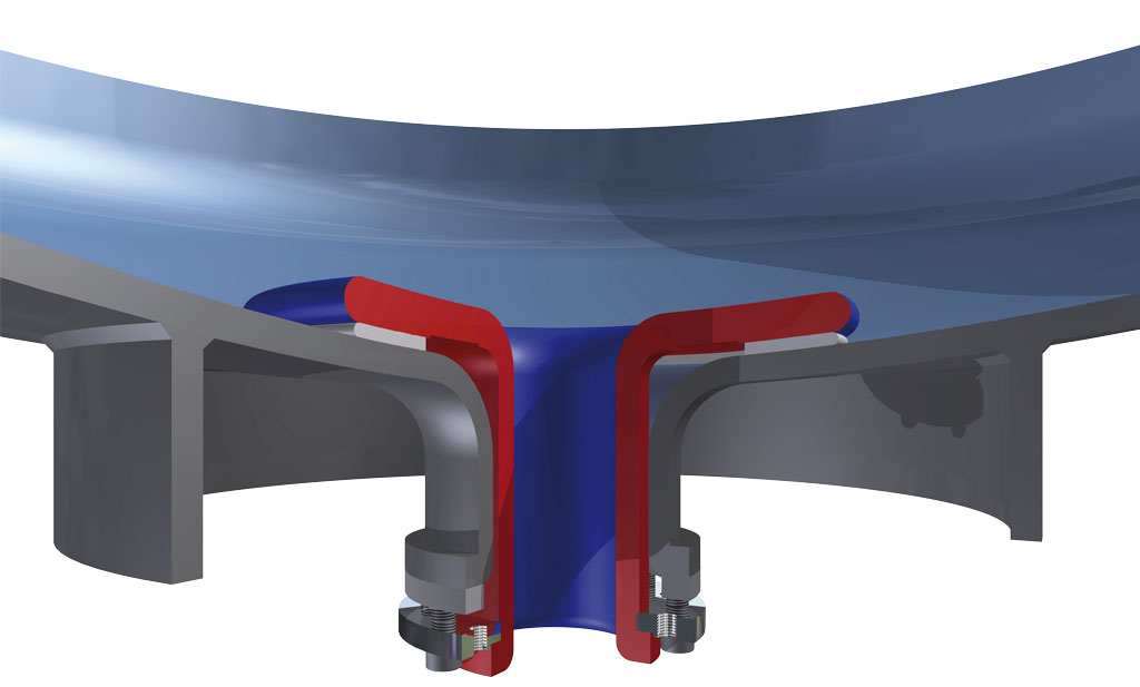 A sealing element made of FDA approved multidirectional expanded PTFE (Flyer K088) provides the seal between the cap nut and the component to be attached. The advantage of this connection method is obvious and lies in separating the functions of "fixing" and "corrosion protection": The pre-tension force of the connection is defined by the properties of the special screw which ensures the greatest mounting strength. Protection against corrosion for the screw connections is ensured, however, by the cap nut coated in the highly wear-resistant THALETEC ABRISIST (Flyer K028).