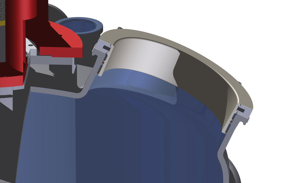 The seal between the tantalum covering element and the glass-lined component is achieved using a PTFE sealing element.
