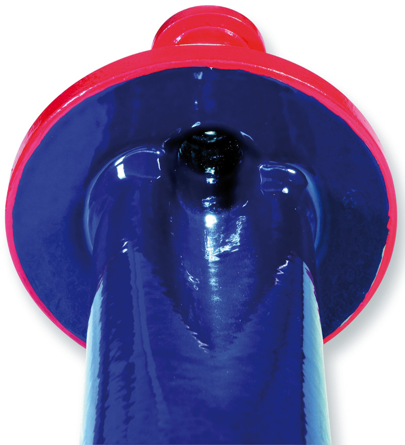 With a mean Reynolds number of 8.5 + 105, there is a specific mixing effort of about 800 Ws/m3 in the case of the blunt flow Delta-Baffle, where as the specific mixing effort in the case of the paddle baffle is about 1,600 Ws/m3, which is thus almost twice as high! On that basis, half of the energy can be saved when homogenising with the Delta-Baffle compared with the paddle baffle which is still in widespread use today!
