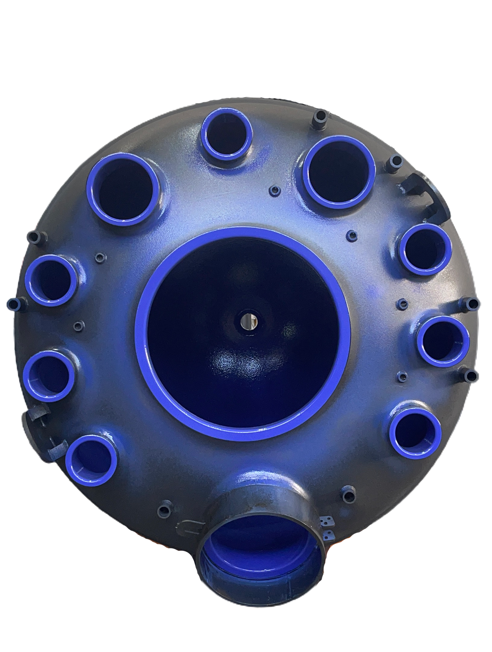 In the case of a desired modification of the nozzle pattern on the upper bottom, it must be ensured that this modification has been tested and approved by THALETEC. For example, the minimum spacing of nozzles is determined, among other things, by the thickness of the upper base; if nozzles are too close to each other, greater wall thicknesses than those of standardized bases may be required. This can have an impact on the procurement time and thus the delivery time.