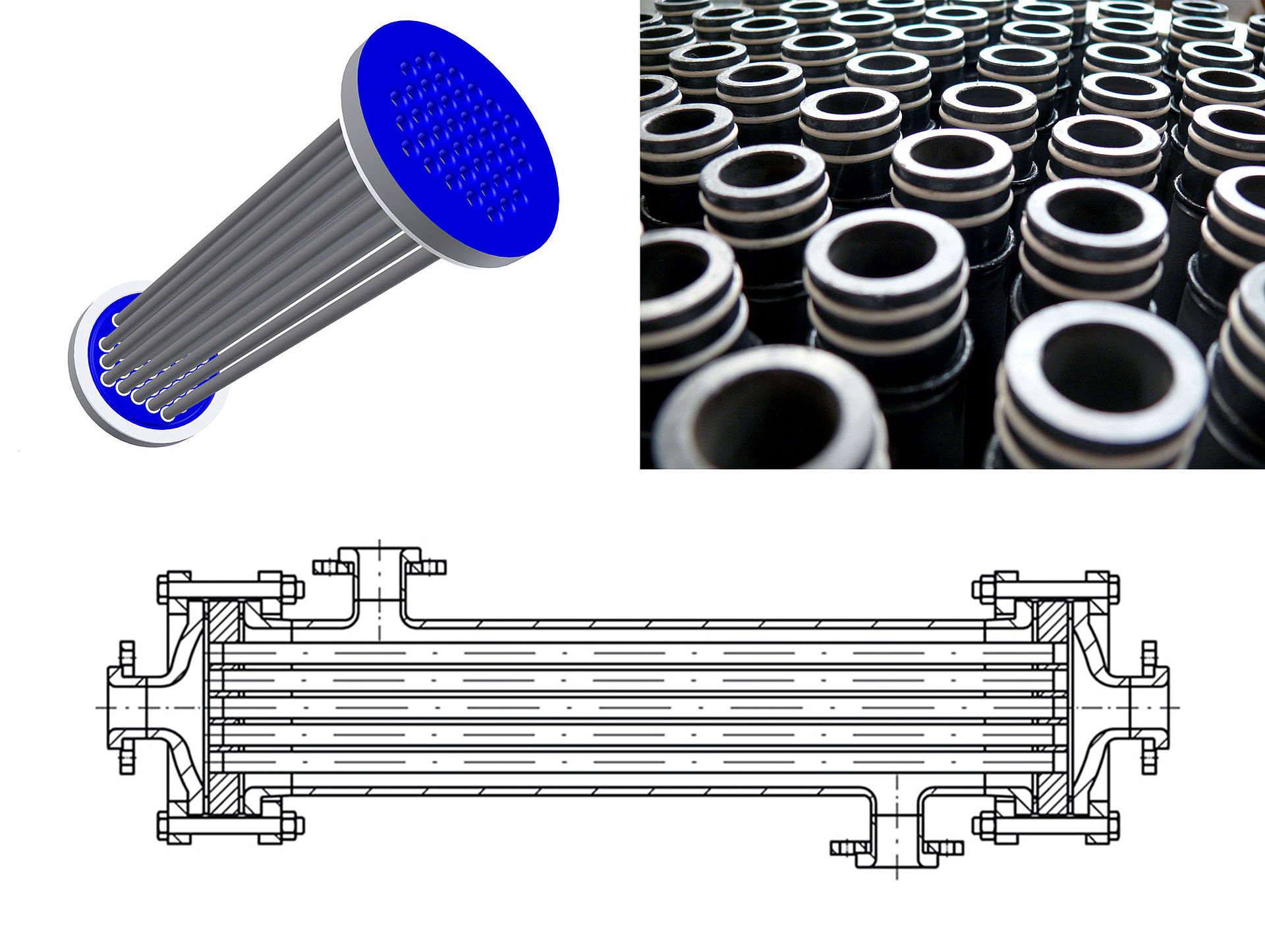 Figure 4: Wide range of possibilities for glass-lined tube bundles in various applications (short path evaporator, storage vessel, top condenser, with glass shell, cold trap, PowerBaffle in reactor, serial connection on product side etc.)