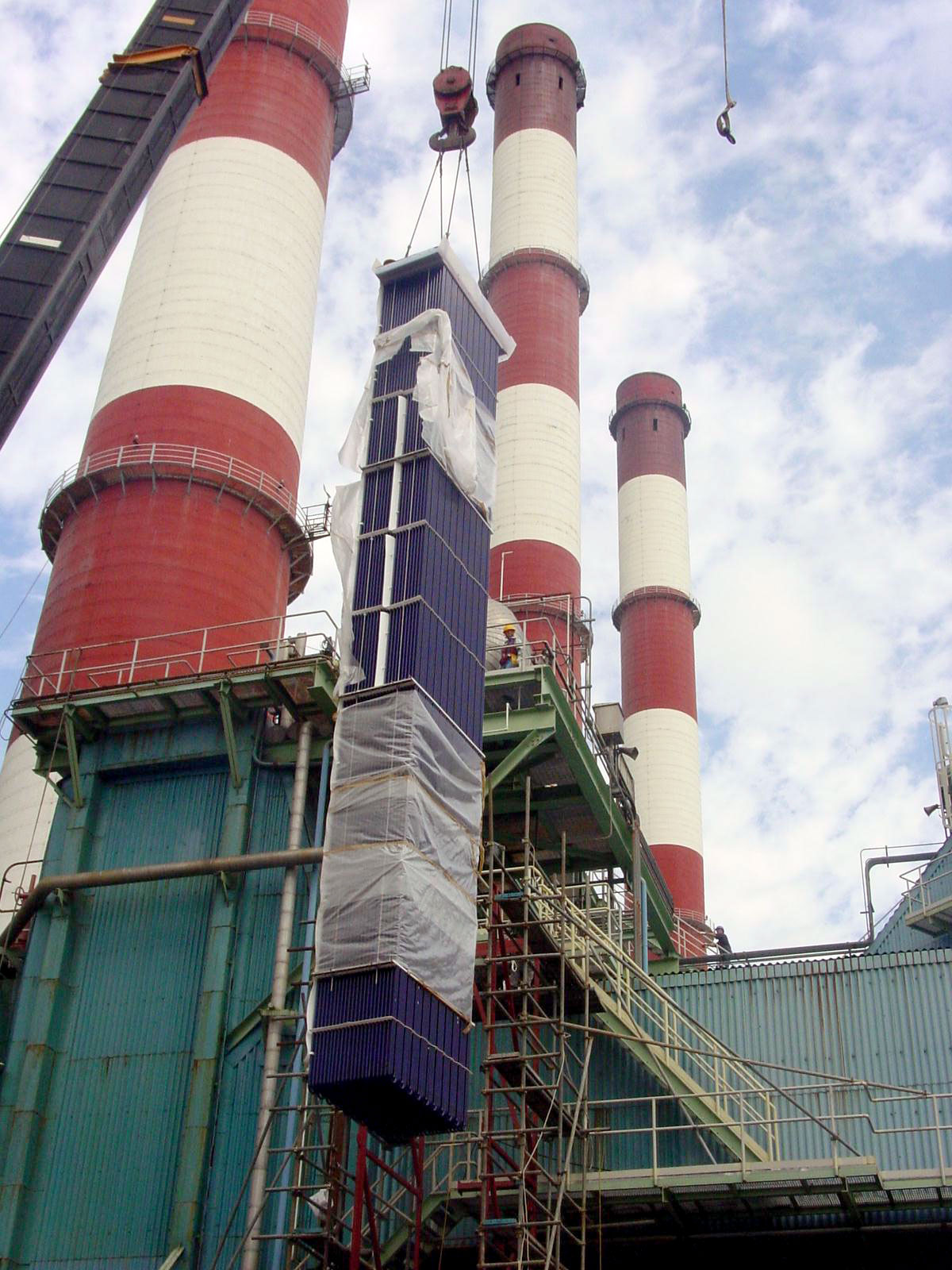 Figure 5: Installation of large glass-lined heat exchangers in a 500 MW power plant unit