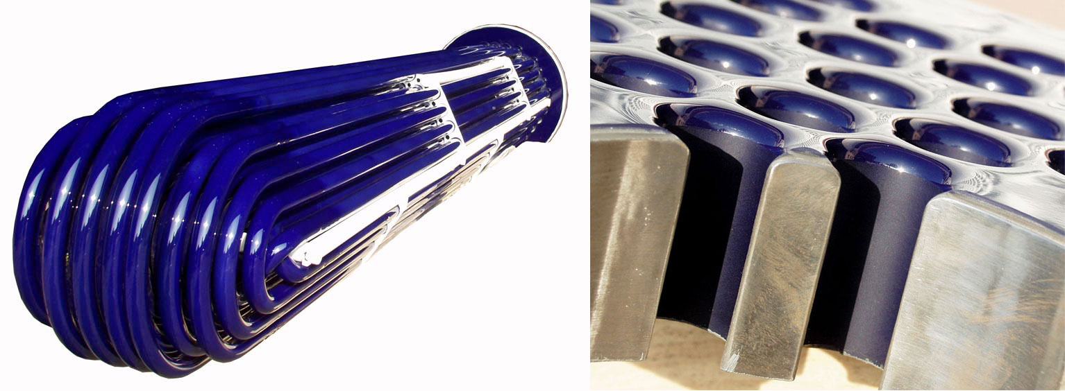 In addition to the use of glass-lined tubes in tube bundles, they are also offered as a stand-alone product and are used, among other things, for flue gas cleaning in power plants. Under the product name PowerTubes (K119), glass-lined tubes are available up to a length of 12 m with an outer tube diameter of 25 mm or with glass-lining of approx. 26.2 mm. Highly corrosion-resistant, robust and diffusion-tight large heat exchangers can thus be implemented and serve as environmental protection as well as heat recovery.