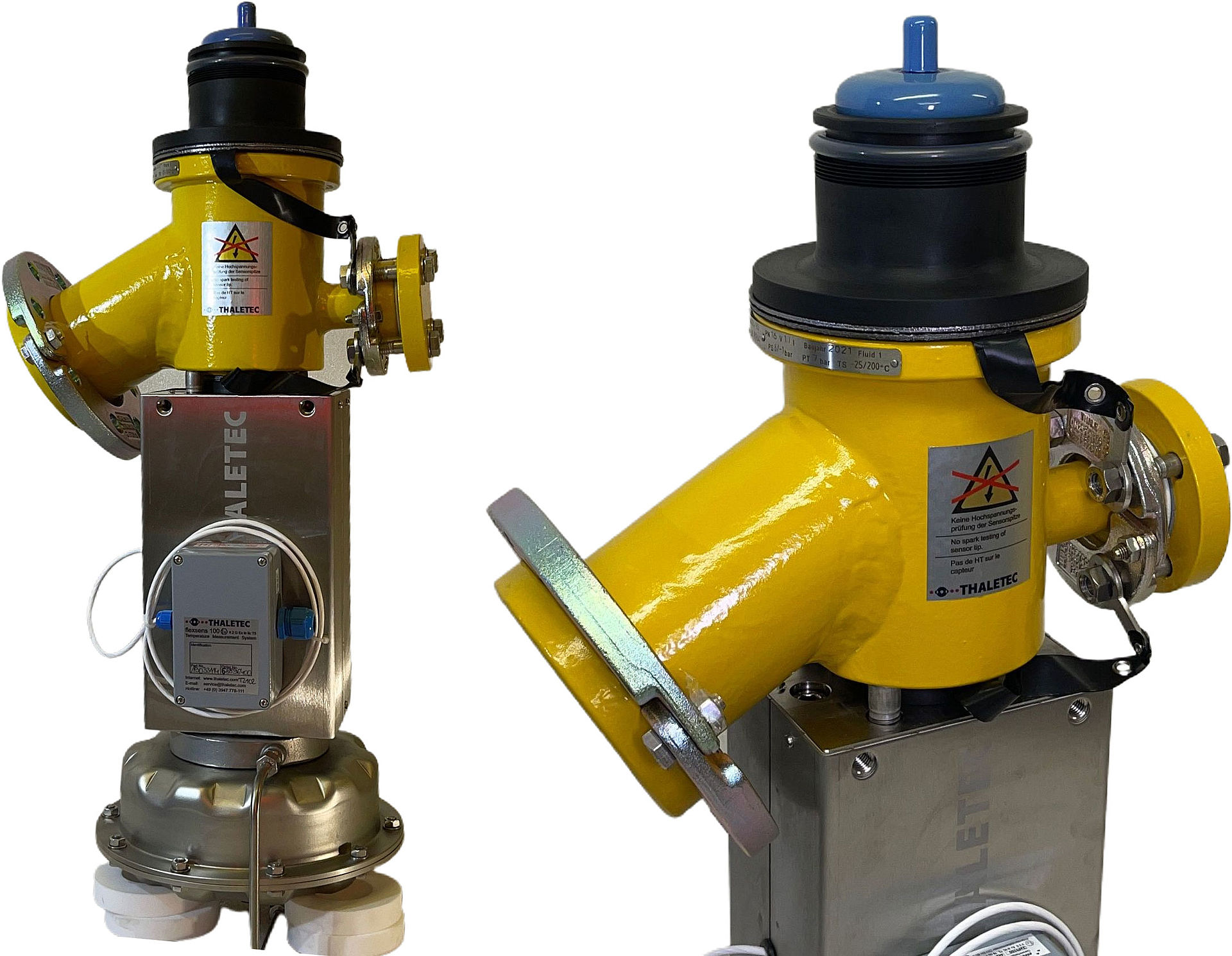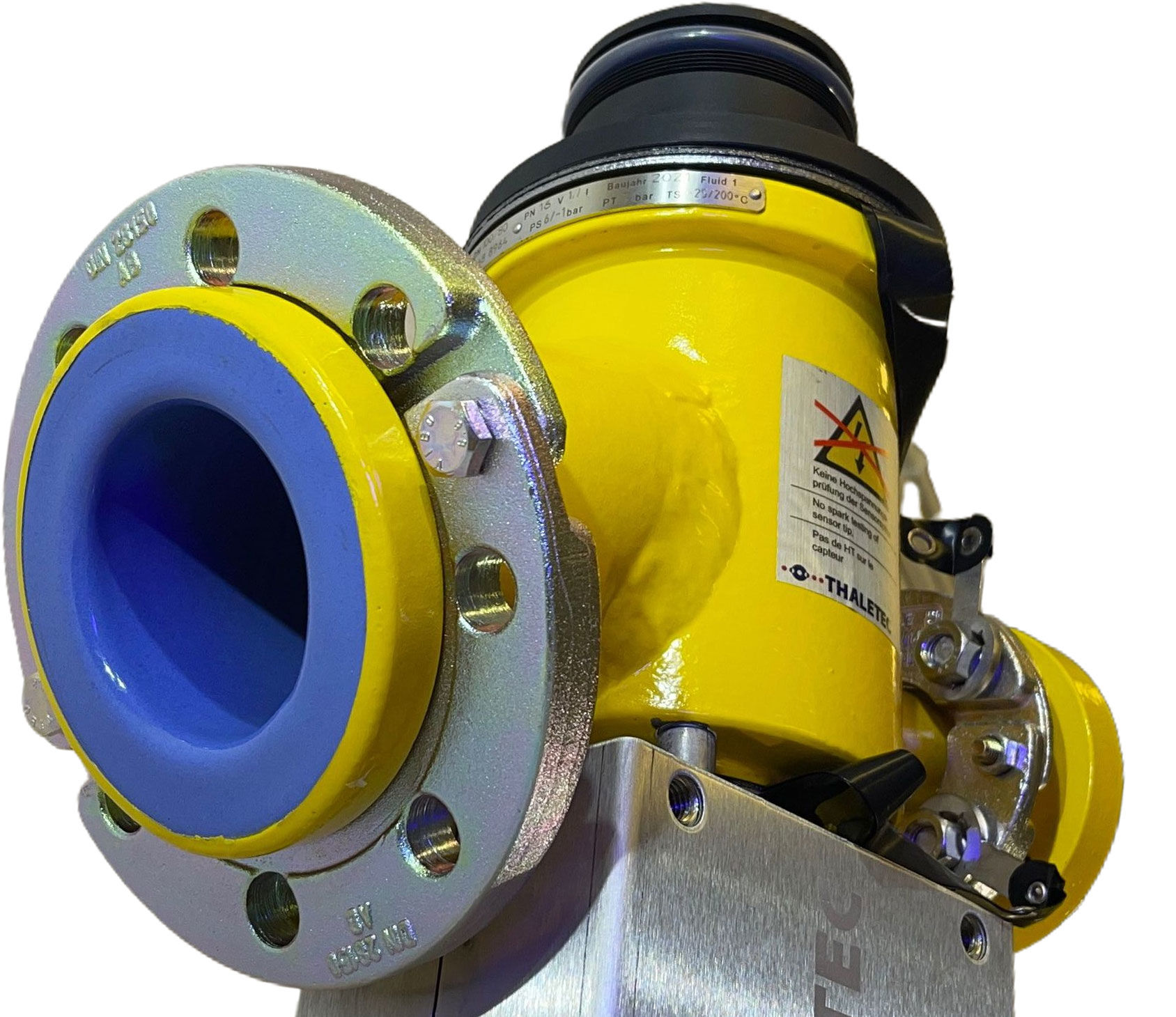 Another new feature is that THALETEC bottom outlet valves with electrically conductive glasslining can now have a tangentially arranged lateral flushing nozzle. Tests have shown that the tangential arrangement of the flushing nozzle has advantages over the radial arrangement previously used with regard to cleaning the valve body.
