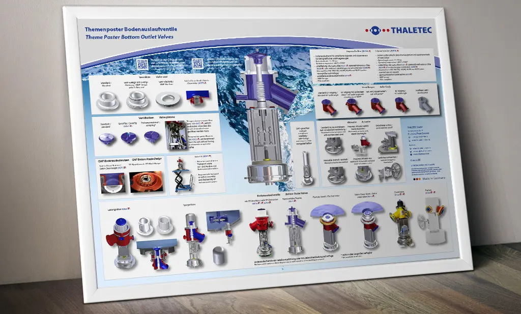 The “Bottom Outlet Valves” poster provides an overview of all variants. Request a digital copy by e-mail to process@thaletec.com or a printed version under the following link!