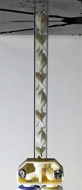 In weiterführenden Untersuchungen soll der Einfluss von hohlen Mischelementen betrachtet werden. Dabei soll sich zeigen, in wie weit sich der Wärmeübergang verbessern lässt mit Hilfe von innen durchströmten Mischelementen. Durch ein 3D-Druck Verfahren mit metallischen Pulvern können so hohle Mischelemente gefertigt werden (Siehe Abbildung 6). Nach dem Aneinanderschweißen und Ausrichten können die Teile emailliert werden und bieten damit korrosiven Schutz während des Mischvorganges.