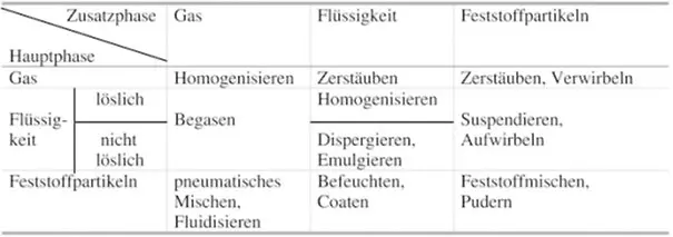 Mischen ist der Vorgang bei dem zwei oder mehr getrennt vorliegenden Stoffe miteinander kombiniert werden. In der Rührtechnik kann dies mit unterschiedlich vorliegenden Aggregatzuständen erfolgen. Man unterscheidet die Art des Mischens anhand der kontinuierlichen und der diskontinuierlichen Phase. So kann eine Flüssigkeit in einer anderen Flüssigkeit homogenisiert werden, wenn diese mischbar sind, oder emulgiert werden, wenn diese unmischbar sind. Ein Feststoff kann in einer Flüssigkeit suspendiert werden und andere Kombinationen sind mit gasförmigen Stoffen möglich. Eine Auflistung der wichtigsten verfahrenstechnischen Mischaufgaben sind in Tabelle 1 zusammengefasst.