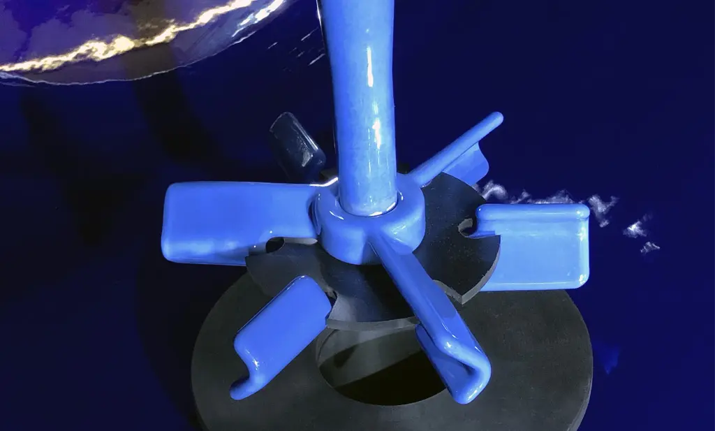 Für einen Kunden in der Schweiz wurde ein Mixer Settler mit 600 mm Durchmesser gefertigt. Als Rührsystem wurde hier eine 3D gedruckte und emaillierte THALETEC SGT Turbine (Flyer K084) verwendet. Die SGT Turbine beruht dabei auf einem Design, welches in der Fachliteratur als „Smith Turbine“ bekannt ist. Dieser Rührer besitzt einen hohen Leistungseintrag und Scherwirkung, was das Vermischen schwer mischbarer Flüssigkeiten deutlich verbessert.