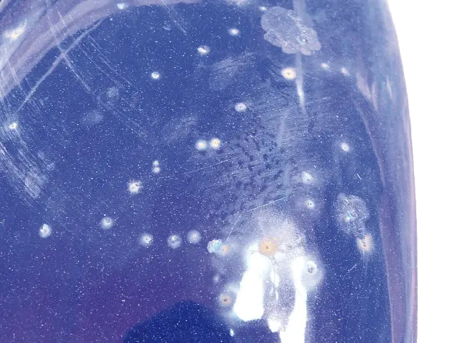 Schäden durch elektrostatische Entladung entstehen vorwiegend an Stellen mit hoher Relativgeschwindigkeit zwischen Medium und emailliertem Bauteil (z.B. an Rührflügelspitzen oder im Bereich des Behälterbodens und Auslaufstutzens) sowie an der Phasengrenze zwischen Flüssigkeit und Gasraum.