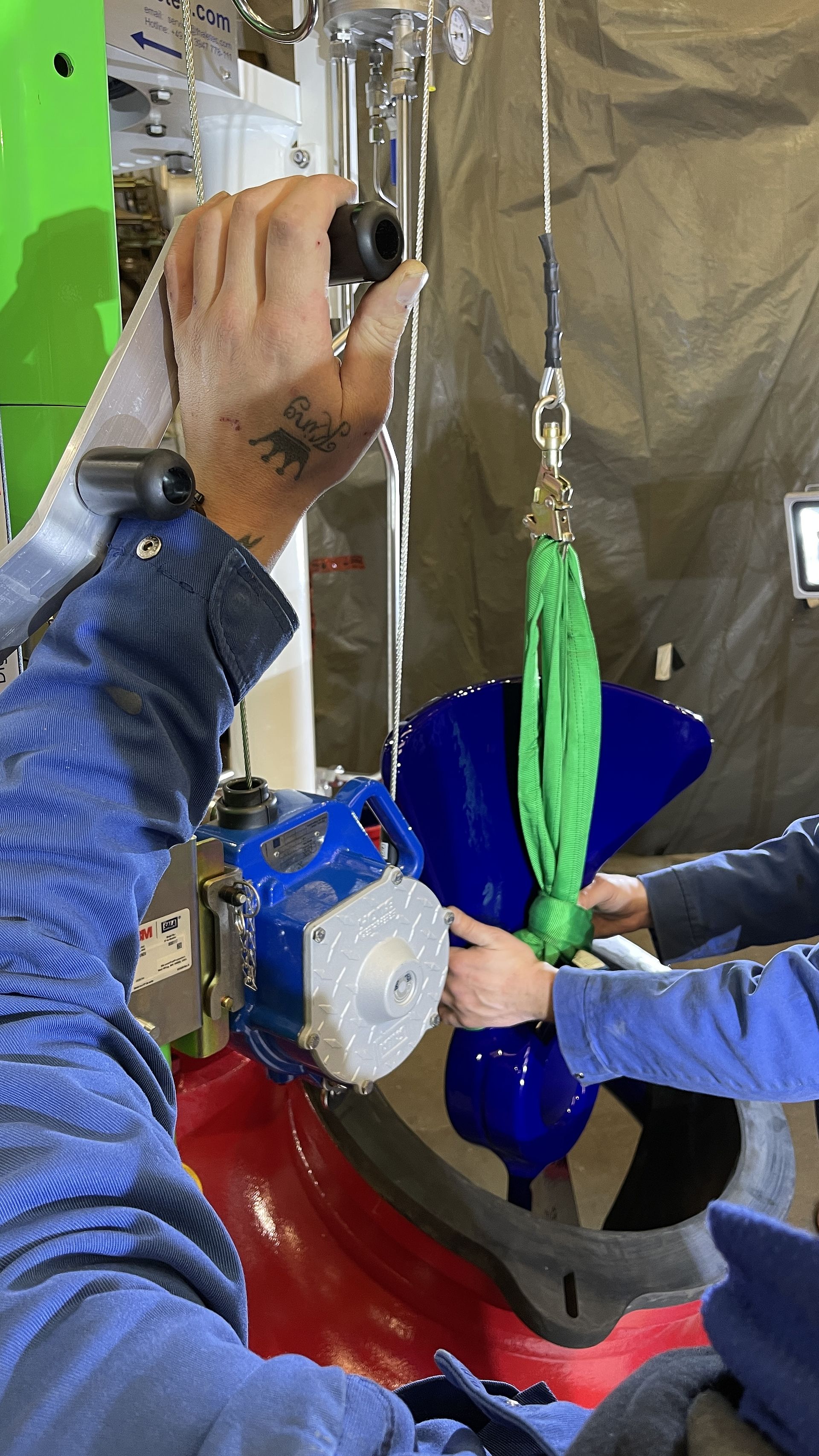 Das 3M™ DBI-SALA® Modulare Davit-Hebesystem „HC“ ist nicht nur dazu geeignet, Personen, die im Behälter Arbeiten verrichten, zu sichern und bei Bedarf zu retten. Das System kann zudem auch als Hebesystem für das Handhaben von Lasten bis 340 kg innerhalb des Behälters verwendet werden. Damit können Arbeiten innerhalb des Apparates, wie zum Beispiel das Austauschen von emaillierten Rührorganen, sicher und zügig durchgeführt werden.