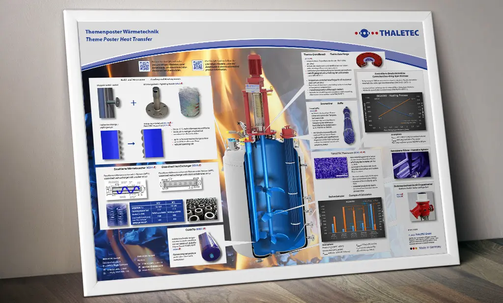 In dem Poster "Wärmetechnik" stellen wir übersichtlich alle Maßnahmen zur Optimierung von Heiz- und Kühlzeiten vor. Fordern Sie eine Kopie per mail an process@thaletec.com an!