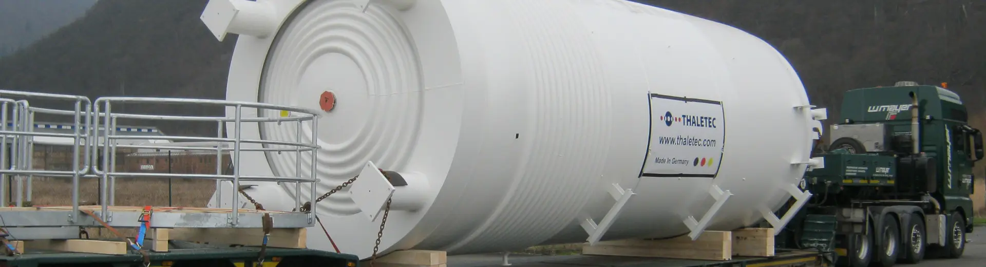 THALETEC fertigt Tanks in stehender und liegender Ausführung sowie in Bauformen nach Kundenwunsch. Das maximal herstellbare Volumen sind 110.000l.